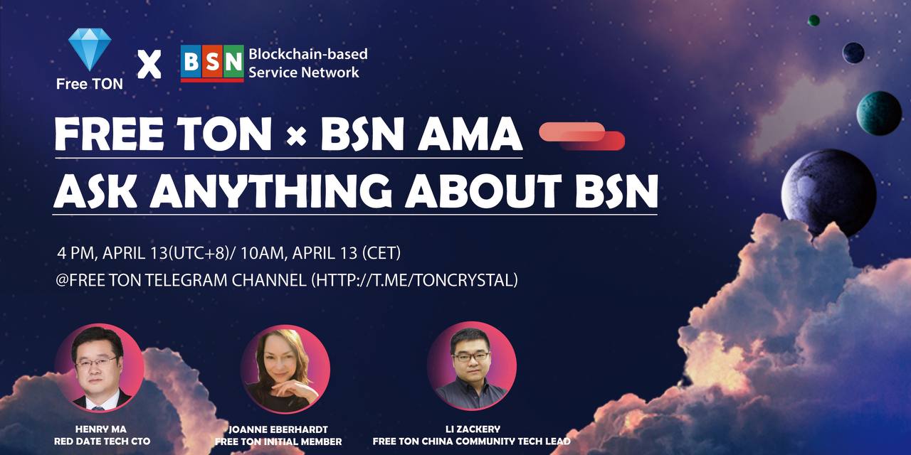 Today, April 13th at 10.00 a.m CET we are going to handle AMA session with BSN - Free TON partner. We shared lots of great thoughts and we are working hard to get the Free Ton OPB online.