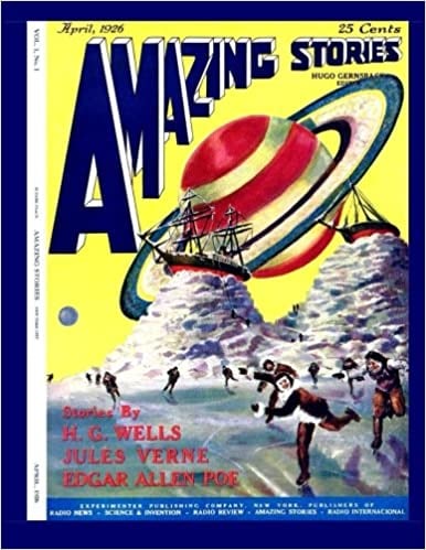 Вообще, Гернсбек с товарищами долго подбирал материал для первых выпусков, поэтому первые два журнала полностью состоят из репринтов. Потому что они получались гораздо дешевле. Гернсбек сделал массовую закупку работ Верна, Эдгар По закончился копирайт, плюс у него были права на рассказы, которые он раньше публиковал в технических журналах. Ну а права на работы Уэллса на тот момент были относительно недорогими. Таким образом, на обложке журнала появились фамилии трех тяжеловесов, которые, на тот момент, могли продать практически что угодно.