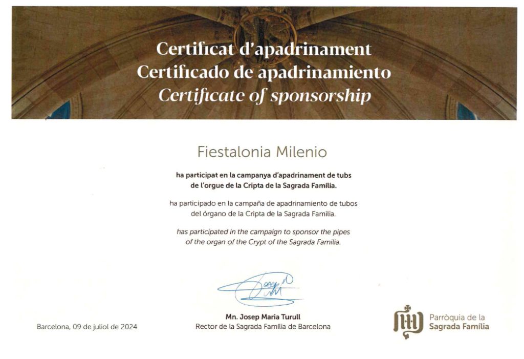 "Fiestalonia" – является официальным спонсором Храма “Святого Семейства”.