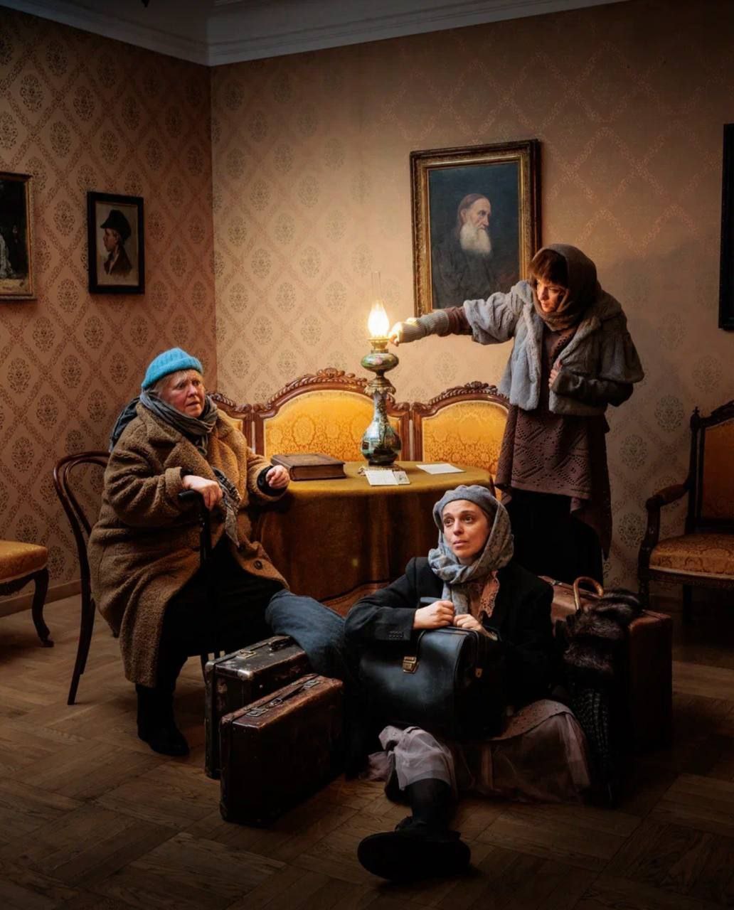 Премьерные показы 26 и 27 января не на театральной сцене, а в усадьбе Голицыных XVIII века на Старой Басманной улице (на территории Сада им.Баумана) - той самой, где жили 3 чеховских сестры. Играют Нелли Уварова, Татьяна Волкова, Татьяна Шатилова.