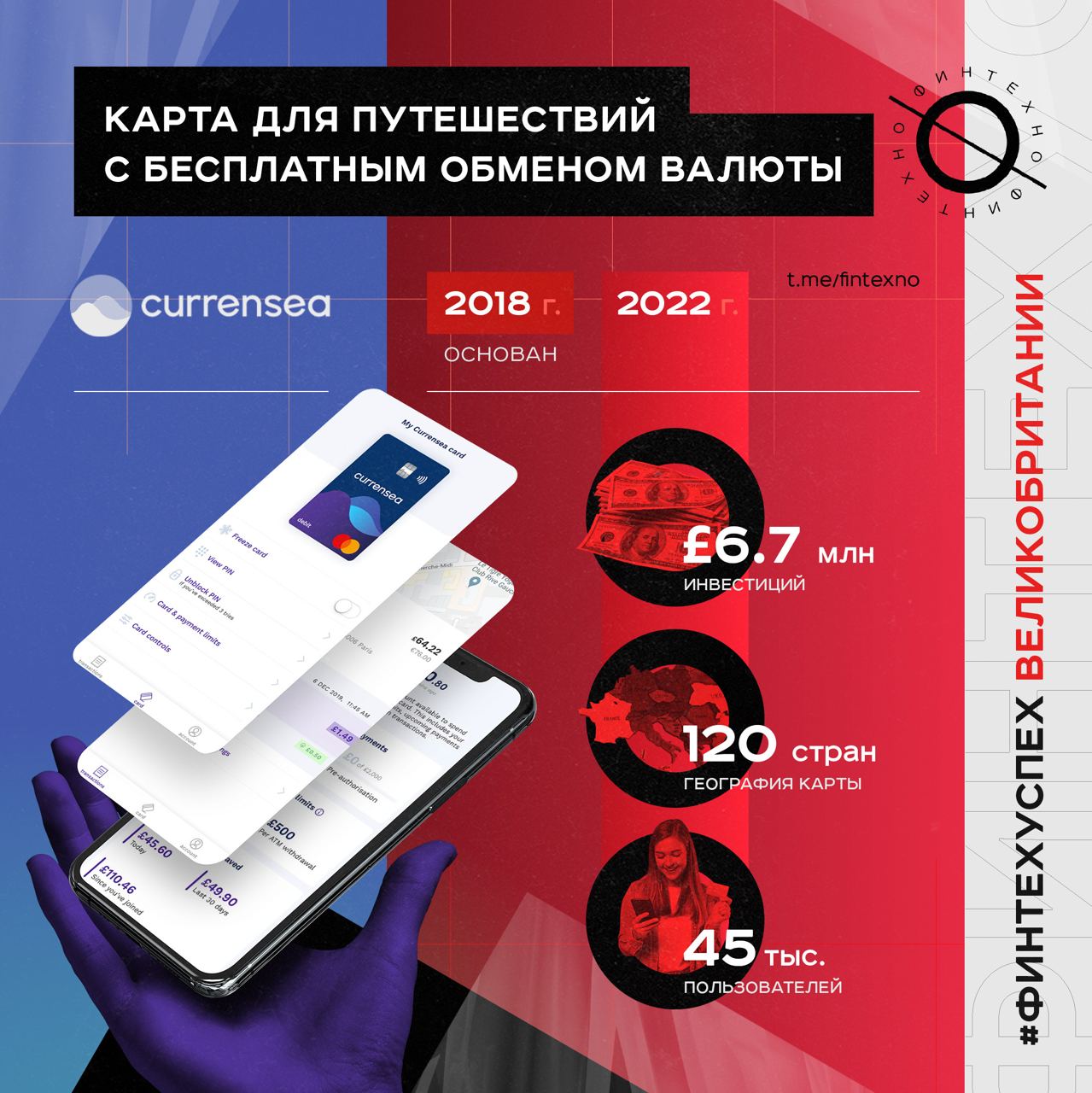 #ФинтехУспех Currensea. Карта для трат в валюте без комиссий за обмен.