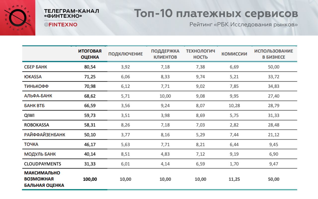 В середине рейтинга — QIWI с провалом в подключении и «Робокасса» с высокими комиссиями. Сервисы на последних строчках рейтинга хороши преимущественно в чем-то одном. У «Райффайзенбанка» эффективная поддержка, «Модульбанк» предлагает очень выгодные условия, а «Точка» и CloudPayments многим дадут фору по технологичности.