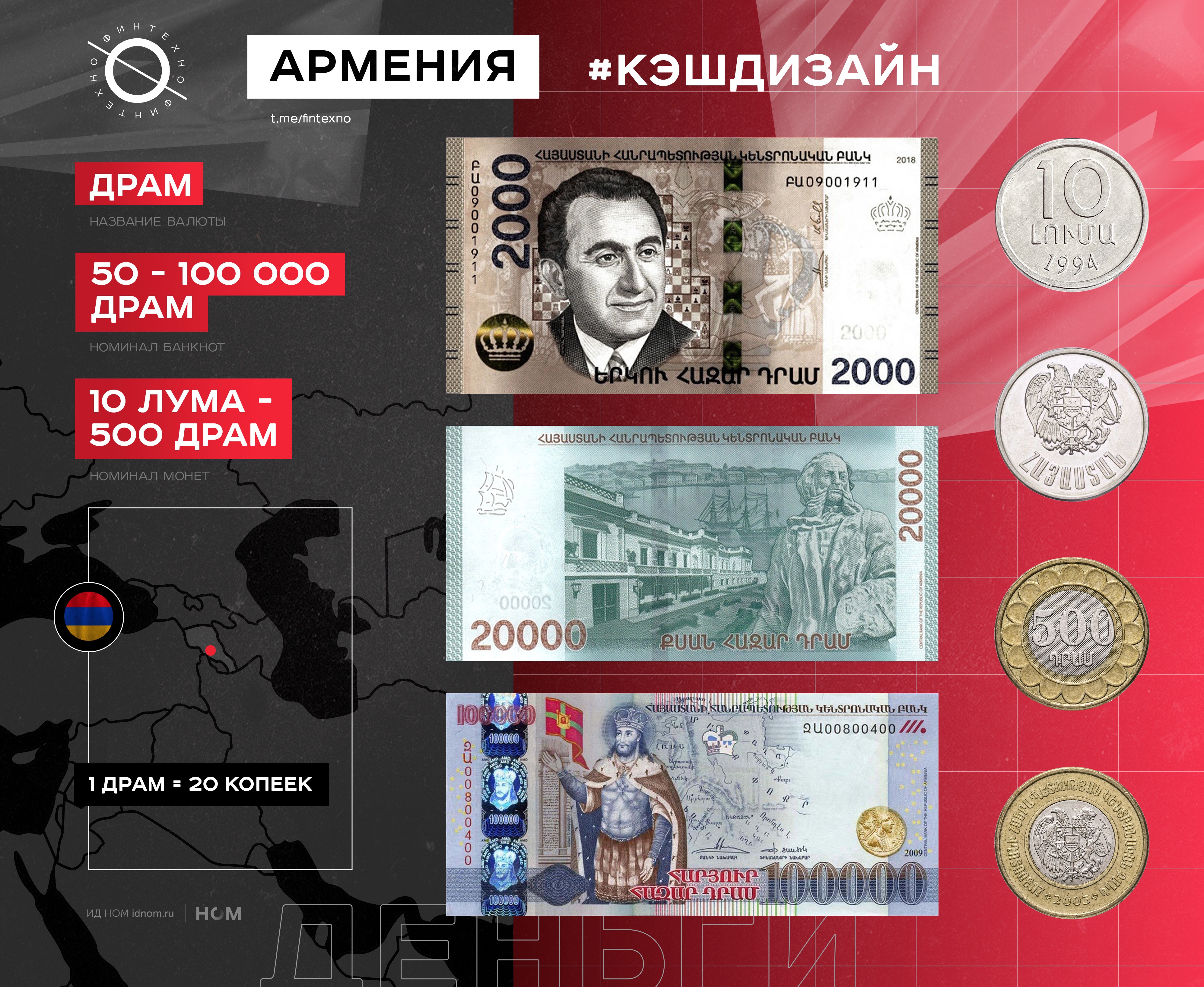 Валюта, у которой есть мобильное приложение, а самая крупная купюра равна 23 850 рублей — это 100 тыс. драм.