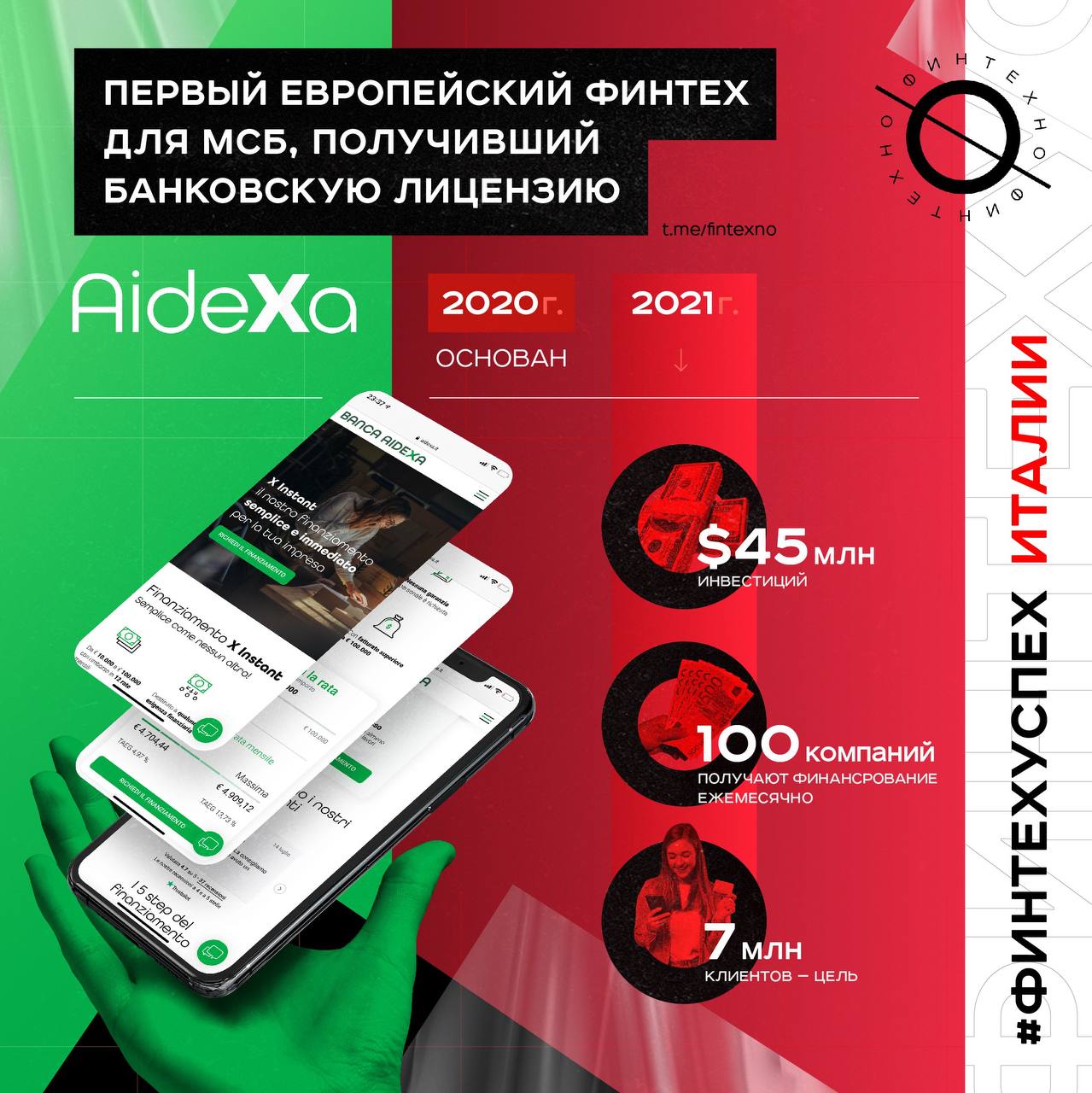 #ФинтехУспех: AideXa — итальянский стартап для малого и среднего бизнеса, который первым в Европе получил полную банковскую лицензию.