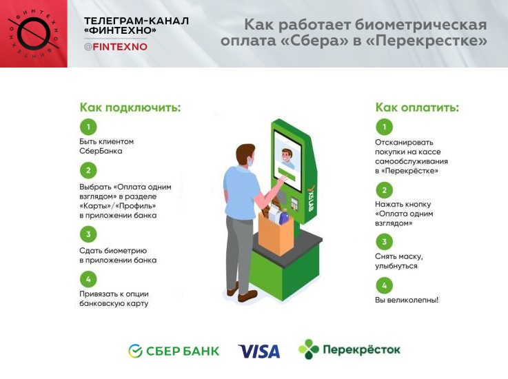 «Сбербанк», Visa и X5 Retail Group запускают оплату покупок по биометрии на кассах самообслуживания в «Перекрестках» и «Пятерочках». Ранее банк тестировал технологию в сети кафе Prime в Москве.