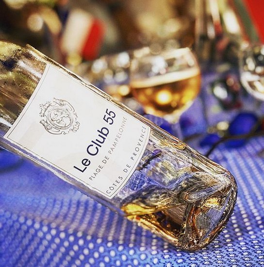 Вот в таком ведерке как у Наили на столе где угодно могло бы быть шампанское (уместное с земляникой), но к нашему неописуемому удивлению у этого клуба есть свое именное вино Le Club 55 Plage de Pampelonne.