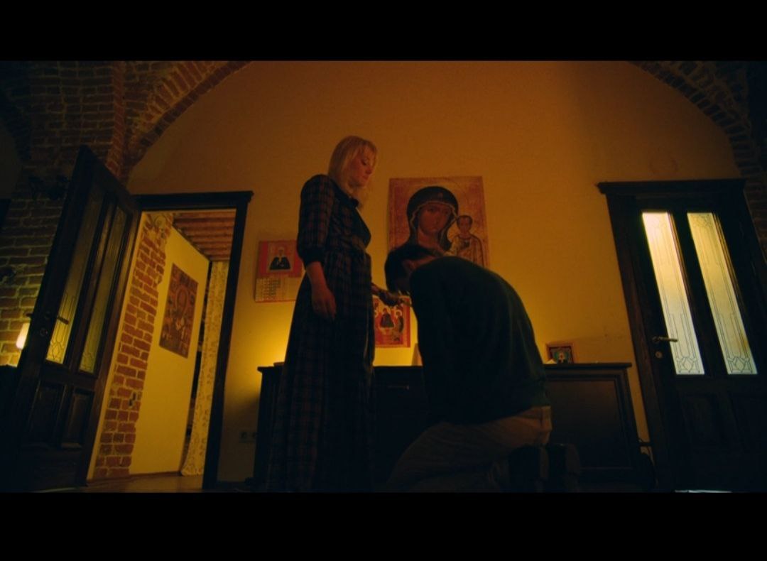 В финале герой, ставший монахом, возвращается в монастырь, пока остальные бегут, и умирает так же, как его жертва из начала фильма – от пуль большевиков. Воистину инфернально показан незримый начальник-гэбист: буквально, мы не видим его лица, только чёрные перчатки и тень. Сжигающие монастырь «мировым пожаром» коммунисты выглядят настоящими одержимыми.