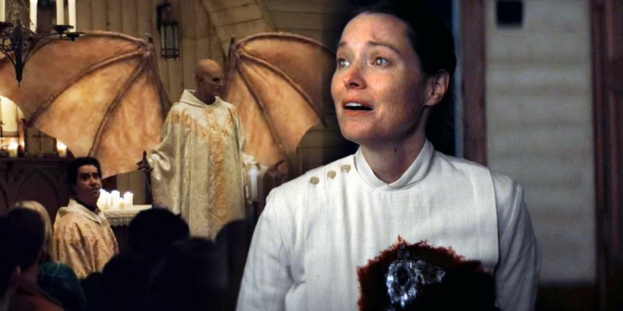Заканчивается кощунственная вакханалия торжеством прогресса. Церковь сгорает, от чего смахивает скупую слезу некто Луи КашеРный. Священник-ренегат срывает колораткуи становится автором Ахиллы, жалея, что не бросил целибат ради блуда (здесь можно в духе К. Леонтьева отметить, что хоть мы и не признаем католическое безбрачие пресвитеров, его можно считать одной из последних скреп Старой Европы), модернистка умирает со словами про «бога-вселенную» (что-то похожее любят всадники атеизма вроде Докинза и дегрода Деграсса Тайсона). Мусульмане совершают намаз: видимо, он даёт арабскую защиту против вампиризма.