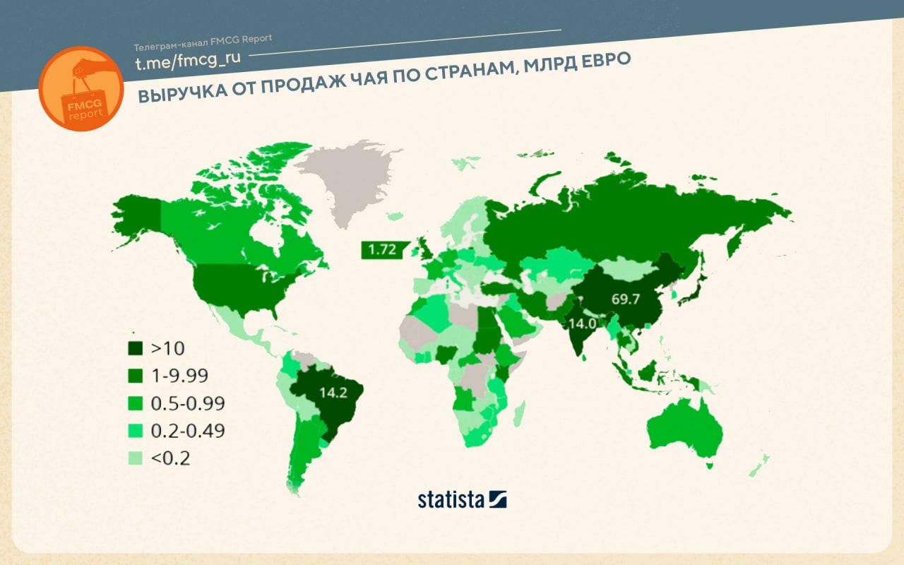 Глобальное производство чая составляет 6,8 млн тонн ежегодно. До конца года объем его рынка превысит $50 млрд (данные Research and Markets), а к 2026 он достигнет $71,8 млрд при среднегодовом росте в 7,15%.