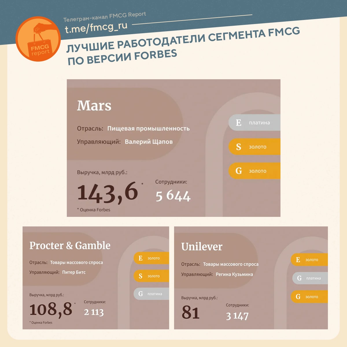 Три компании из FMCG-сектора стали лучшими работодателями России.