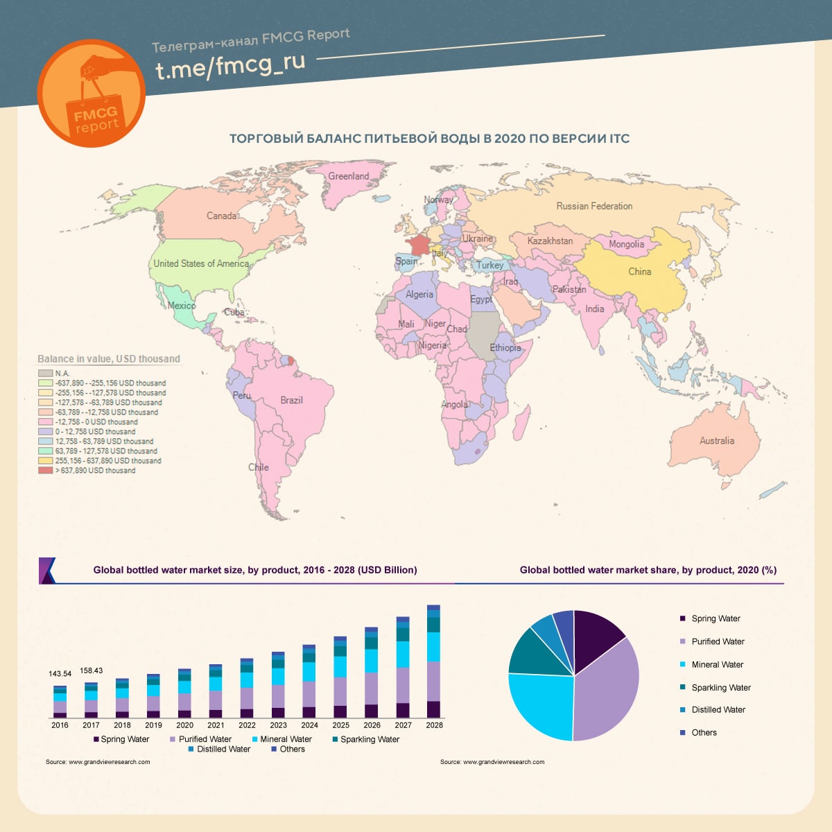 Глобальный рынок питьевой воды составил около $250 млрд в прошлом году. К 2026 его объем прогнозируется на уровне $400 млрд (данные Facts&Factors).