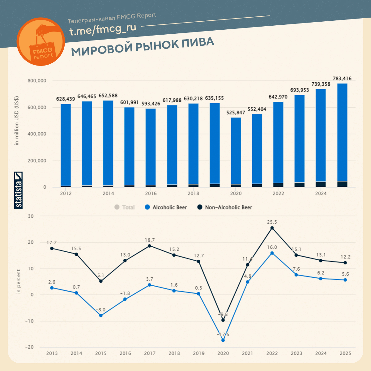 - Сейчас безалкогольное пиво занимает 4,57% рынка. К 2025 его доля поднимется до 5,92%.