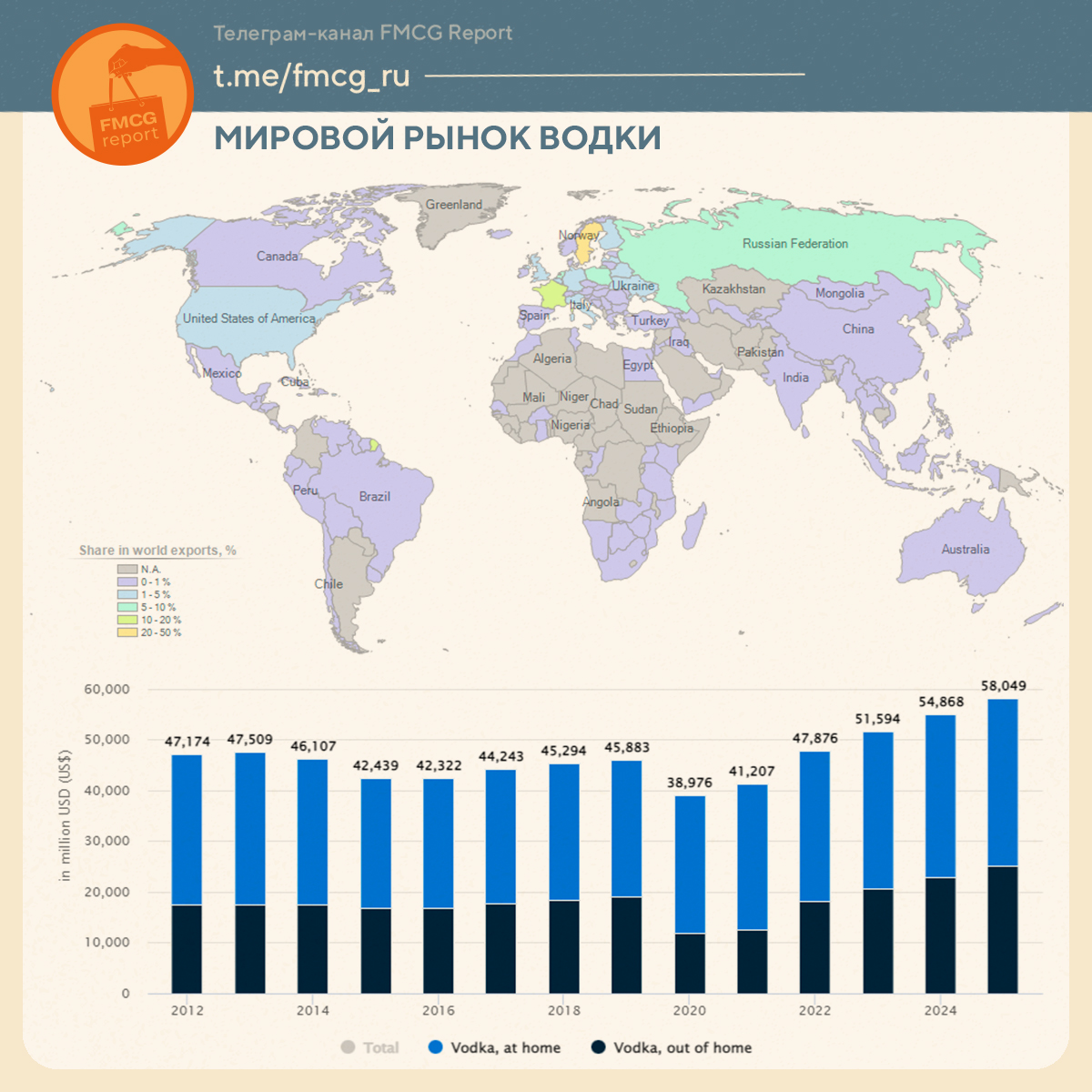 - Крупнейший национальный рынок водки — США ($12 млрд).