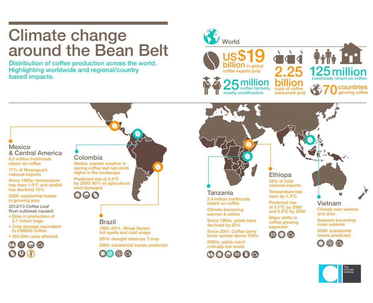 - При сохранении температурных трендов территория, пригодная для выращивания кофе, к 2050 может сократиться вдвое (данные Climatic Change). А лидеры отрасли — Бразилия и Вьетнам — потеряют еще больше.