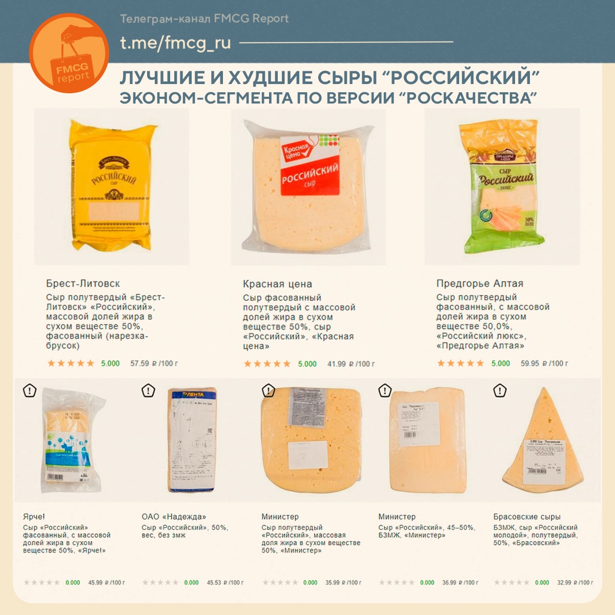 - Высший балл получили ТМ "Предгорье Алтая", "Брест-Литовск" и "Красная цена" (СТМ "Пятерочки"). При этом сыр последних двух марок произведен в Белоруссии и не может претендовать на Знак качества.