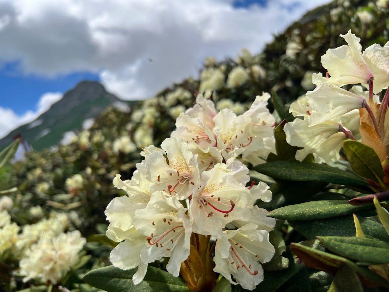 А если подняться на самый вверх, то можно увидеть цветение первых рододендронов.