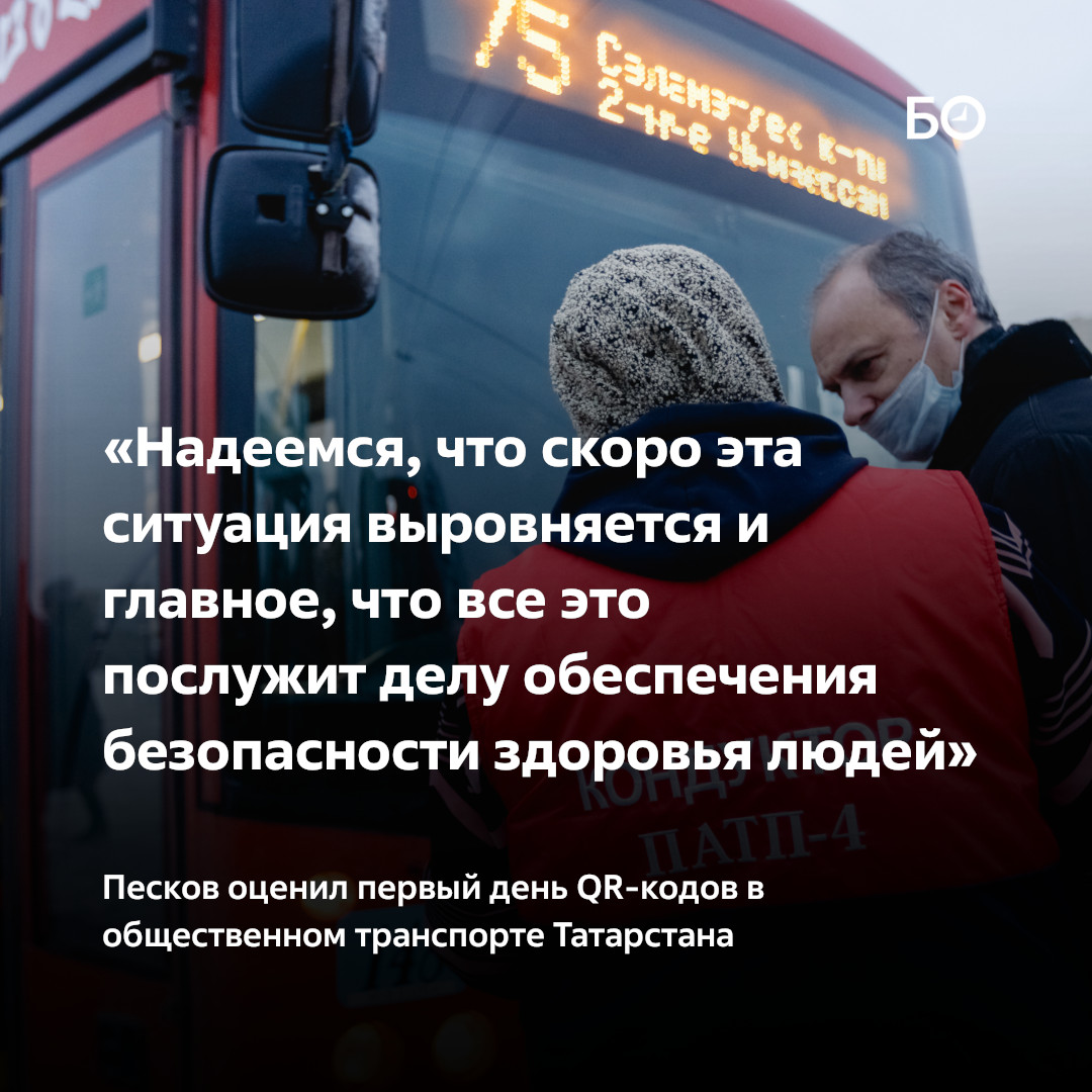 Песков оценил первый день QR-кодов в общественном транспорте Татарстана. В Кремле надеются, что ситуация с транспортным коллапсом вскоре выровняется.