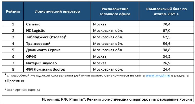 🏅 RNC Pharma представила первый рейтинг логистических операторов на российском фармрынке.