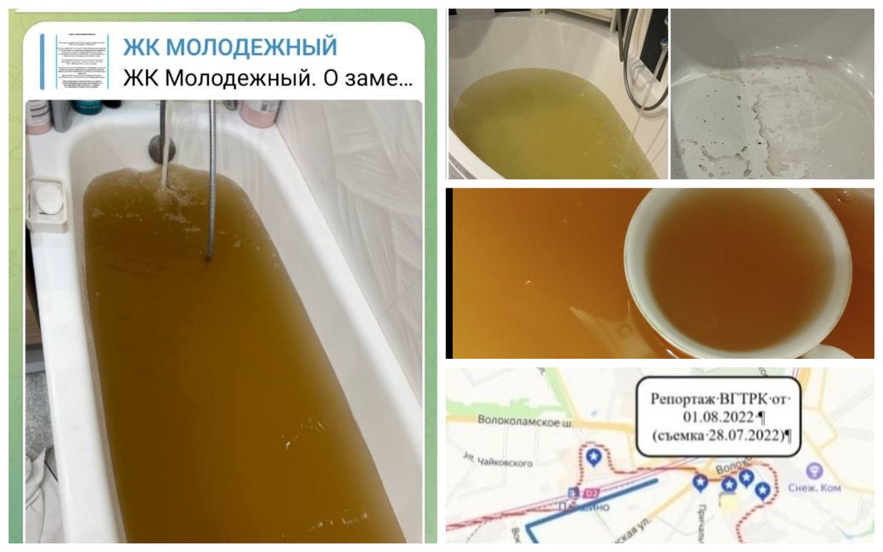 «Здравствуйте! Осветите, пожалуйста, нашу проблему. Мы живём с этим более 6 лет. Вот такая вода идет без перерыва в Красногорске: Павшино, Южный, Молодежный, Тетрис. В район на 24 тысячи человек поступает вода от водозаборного узла 10. Чиновники отчитались в декабре 22года, что ВЗУ10 отремонтировали, заменили насосы, к домам проложили новый трубопровод. А вода как шла 8 лет ржавая, так и идет. Жители обращались в УК, в водоканал, администрацию Красногорска, гжи Красногорска, Роспотребнадзор- все ведомства не нашли проблем в системе подачи воды. Обращались в МинЖКХМО и в прокуратуру Красногорска. Толка нет. Что нам делать? Ни помыться, ни постирать. У многих дерматиты. Помогите! И сейчас не исправив ситуацию с подачей воды, на эти же сети и водозаборный узел строятся новые жк Молодежный и жк Тетрис. Новым жильцам не говорят, что вода идет стабильно ржавая».