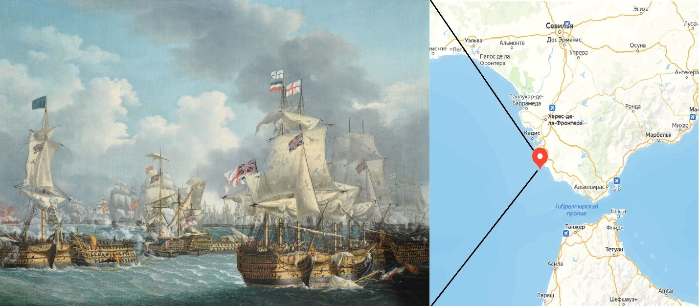 Объединённую французско-испанскую эскадру на пути к узкому Гибралтарскому проливу ждал британский флот во главе с адмиралом Нельсоном.