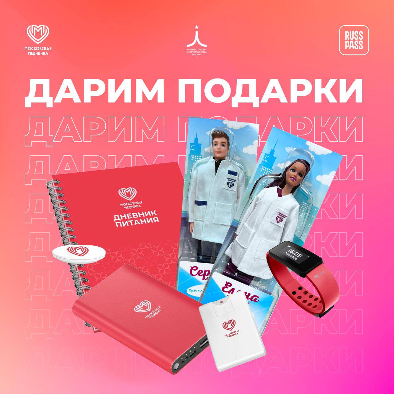 🎁 5 счастливчикам подарим: фитнес-браслет, повербанк, дневник питания, попсокет и куклу врача