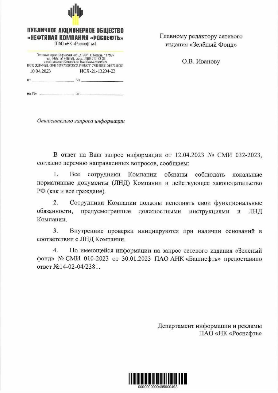 Обнаружены ESG-скелеты в шкафу и у других «дочек» «Роснефти». Но об этом мы расскажем уже в наших следующих публикациях.
