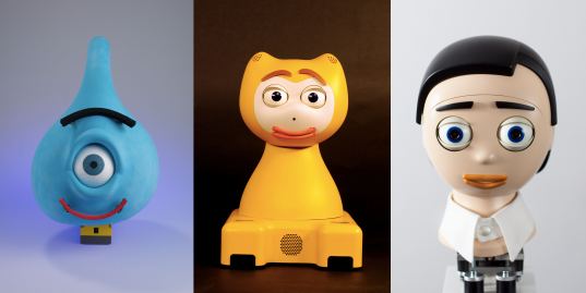 На картинке разные подходы к моделированию эмоций: eMuu (2001). iCat (2005–2012) и Flobi (2010).