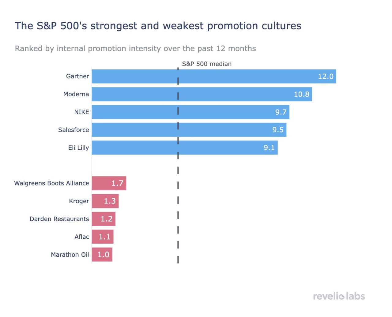 🔹Gartner, Moderna, Nike, Salesforce, Eli Lilly — внутренние промоушены в 2–3 раза выше медианы.