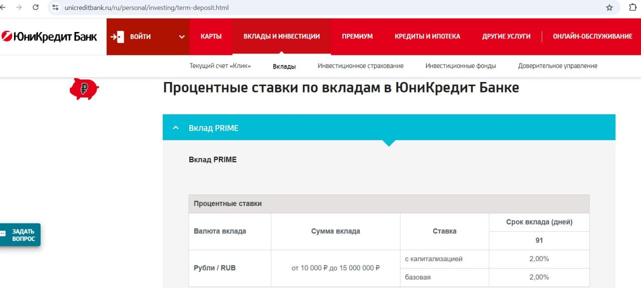 Рублевый вклад Prime от "ЮниКредит Банка" под 2% годовых на 91 день :)
