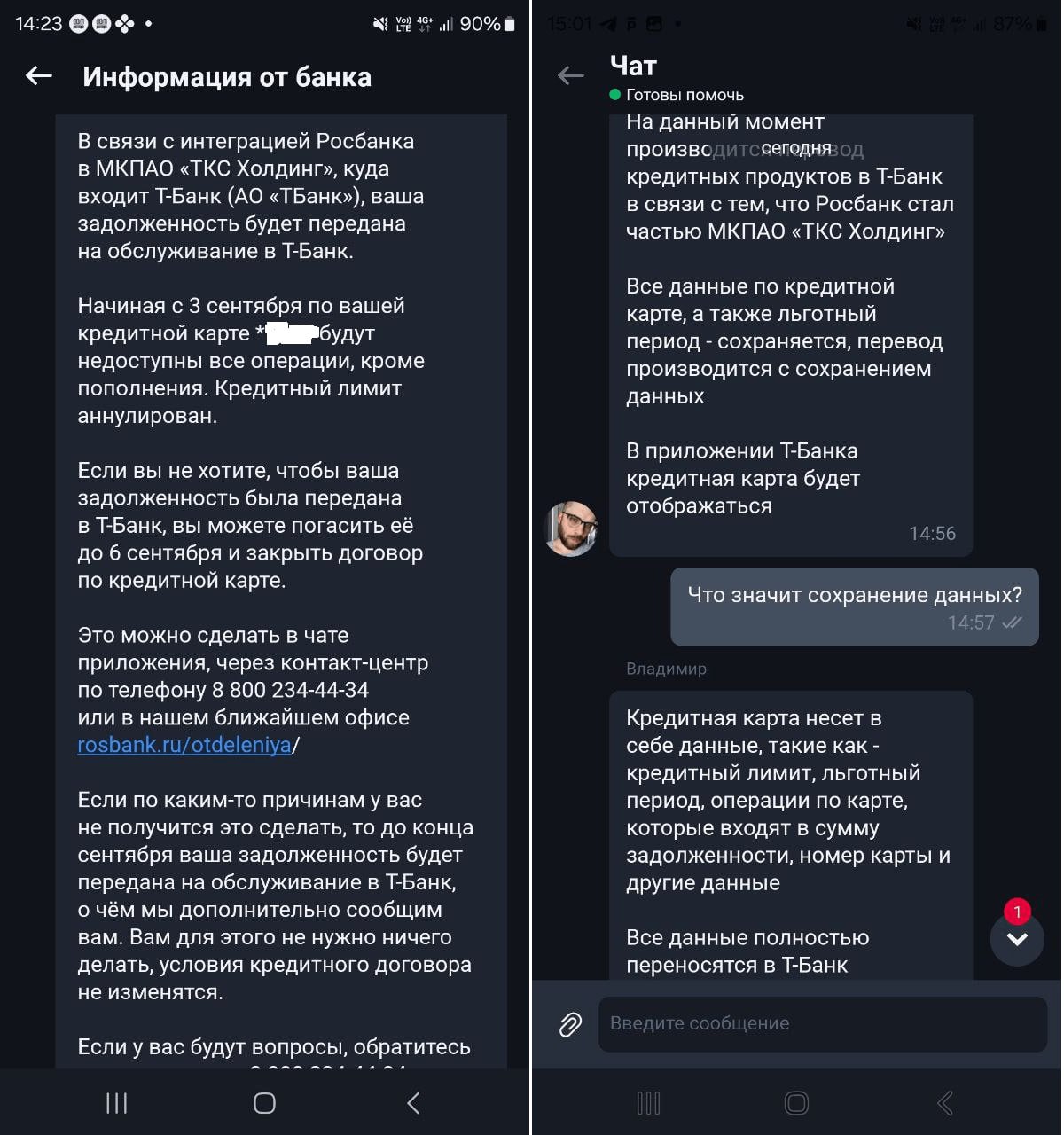 Пришло сообщение от "Росбанка", что моя кредитка "120 на ВСЁ Плюс" переезжает в "Т-Банк".