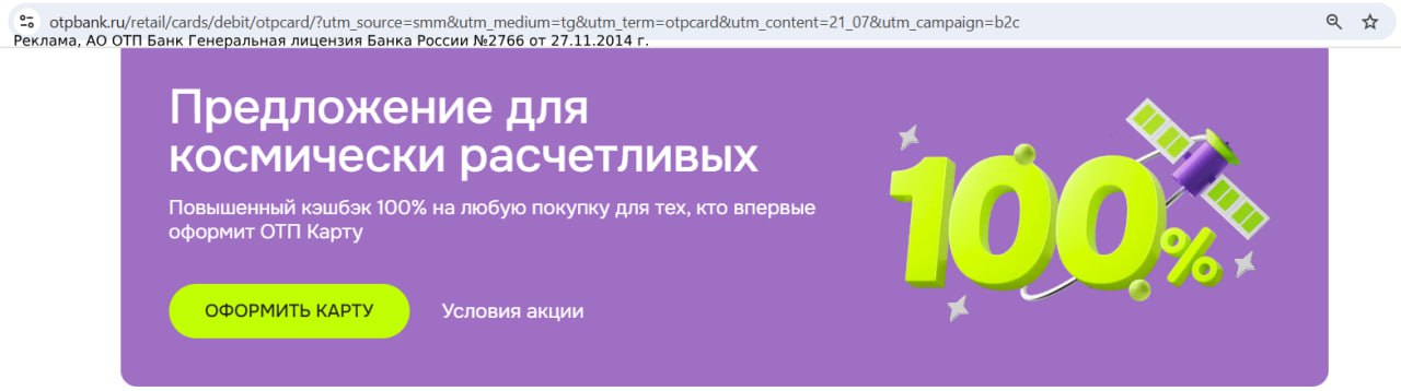 ▶️ Получить бесплатную ОТП Карту с кэшбэком 100%