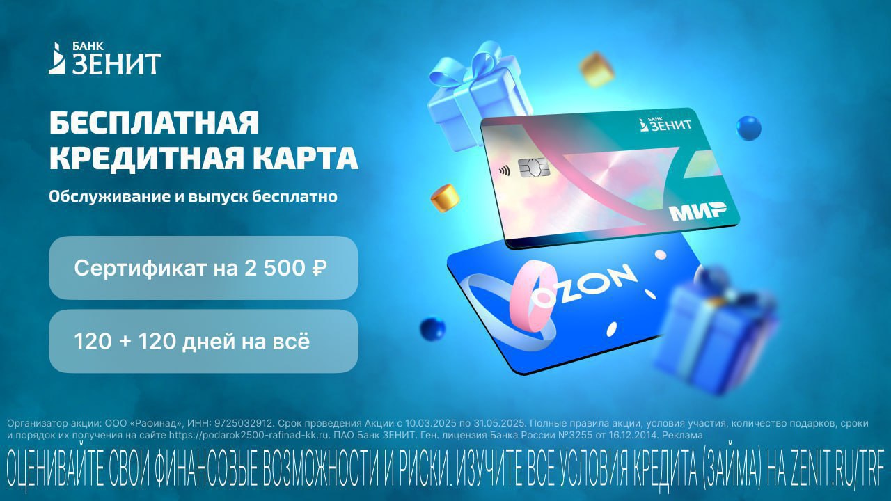 2500 руб. в OZON за бесплатную кредитную карту "120+120 ДНЕЙ НА ВСЁ" от Банка ЗЕНИТ. Кредитка для покупок в супермаркетах.
