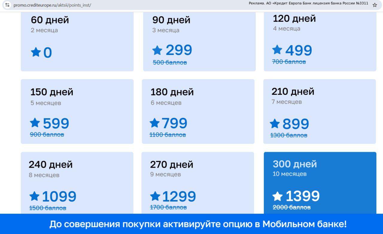 За 1399 баллов — на 300 дней;