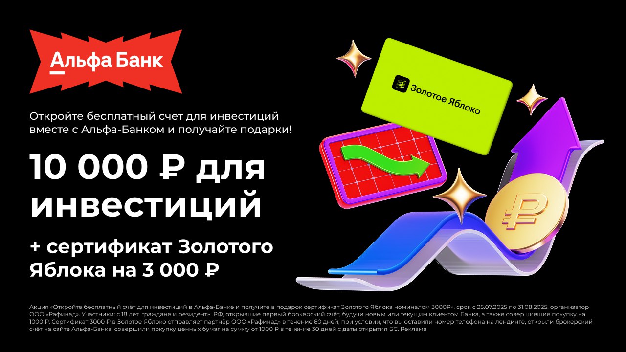 ❗️Акция актуальна для клиентов, у которых сейчас нет действующего брокерского счёта в "Альфа-Банке", либо есть, но по нему не было сделок до 01.09.25, условия акции тут.