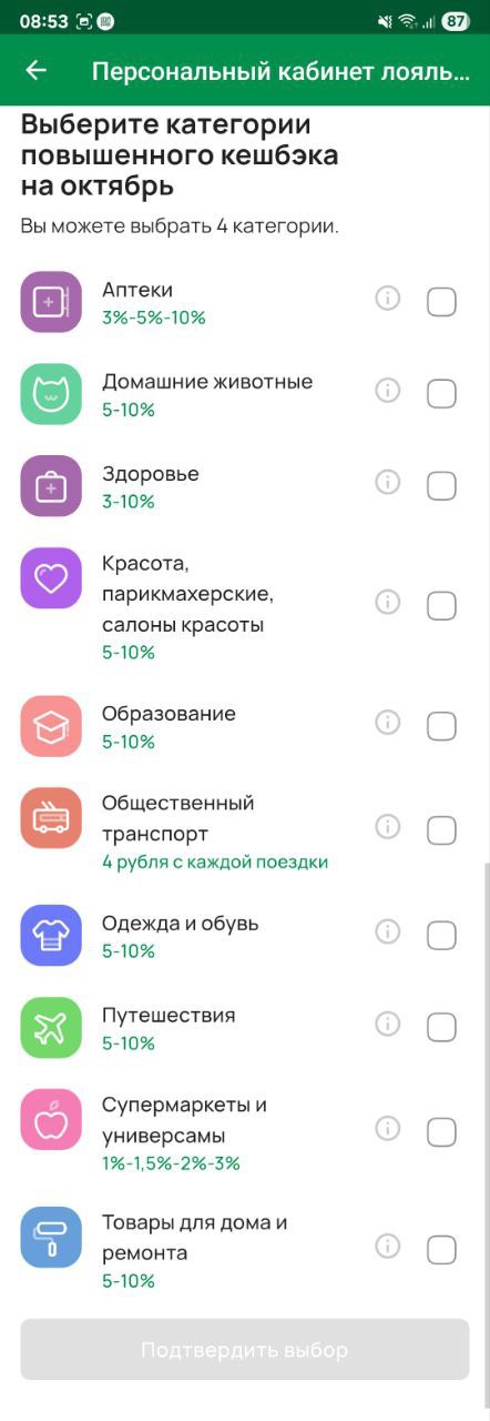 Выбираем категории повышенного кэшбэка в "ВТБ" на октябрь (у всех разные).