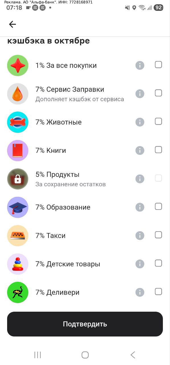 В "Альфа-Банке" стали доступны для выбора повышенные категории на октябрь 2025 (у всех разные). Ждём скриншоты от счастливчиков со 100% кэшбэка :)