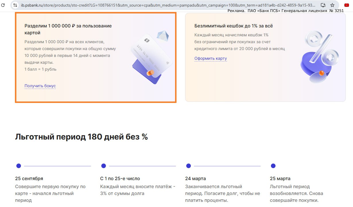 ▶️ Статья про кредитку "180 дней без%" от ПСБ на сайте тут.