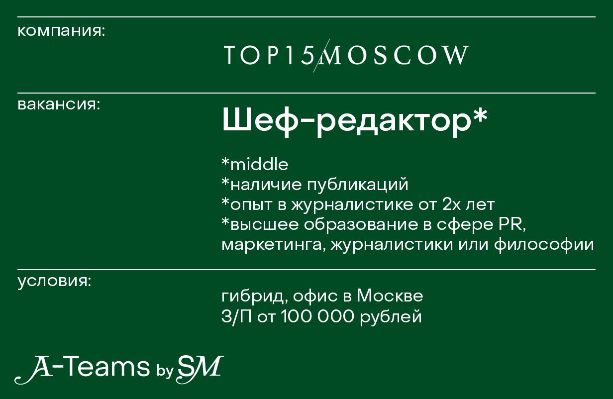 Шеф-редактор в TOP15MOSCOW