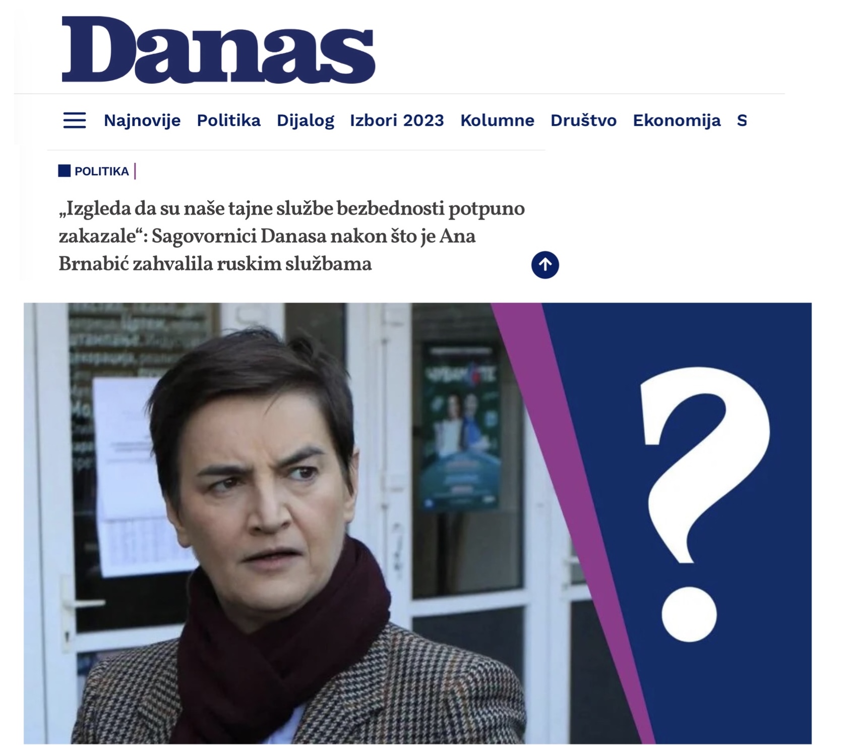 Заявление премьер-министра Сербии Аны Брнабич со словами благодарности российским спецслужбам, предупредившим о возможной «цветной революции» в стране было встречено неоднозначно и засчитано, скорее, в минус суверенного государства.