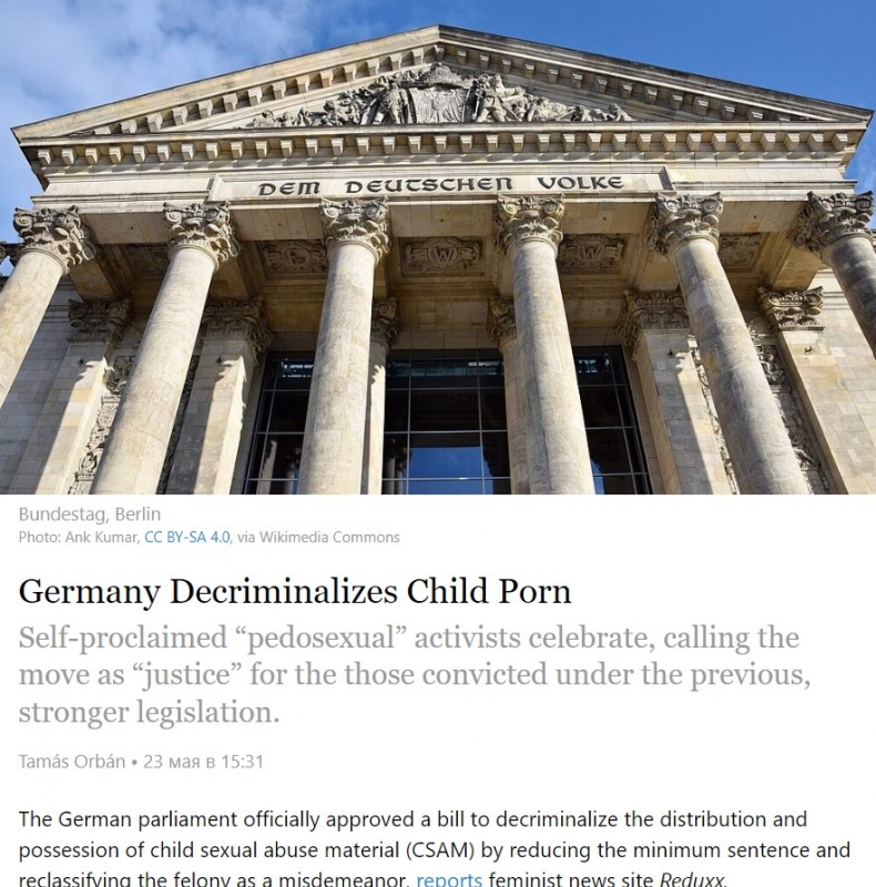 По сути, Бундестаг отменяет решение 2021 года, которое классифицировало хранение и распространение детской порнографии как преступление, предусматривающее минимальное наказание в виде лишения свободы сроком на один год. Новые правила, однако, идут еще дальше: не только хранение детской порнографии будет классифицироваться как проступок, но и её распространение. Хранение повлечёт за собой «минимальное наказание в виде трёх месяцев тюремного заключения, а распространение – минимальное наказание в виде шести месяцев тюремного заключения».