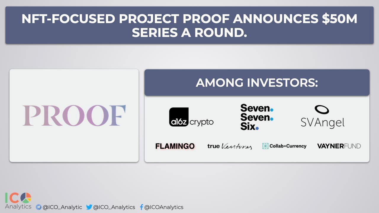 โโNFT-focused project PROOF announces $50M Series A round, led by a16z. Seven Seven Six, True Ventures, Collab+Currency, Flamingo DAO, SV Angel, and VaynerFund are among investors.