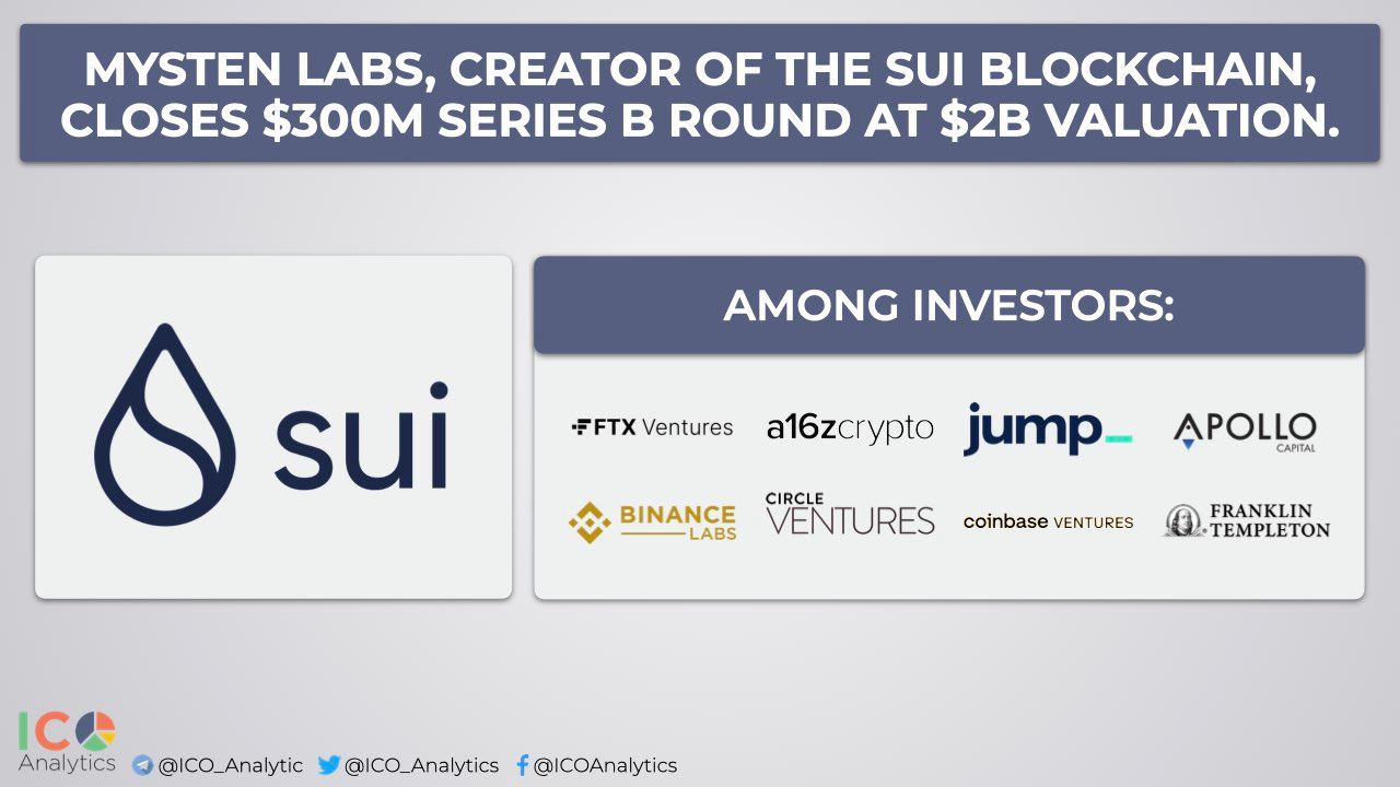 โโMysten Labs, creator of the Sui blockchain, closes $300M Series B round at $2B valuation. The round was led by FTX Ventures, with participation from a16z Crypto, Jump Crypto, Apollo, Binance Labs, Franklin Templeton, Coinbase Ventures, Circle Ventures, Lightspeed Venture Partners, Sino Global, and others.