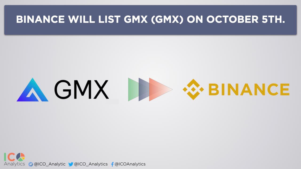 ββBinance will list GMX (GMX) on October 5th. GMX/BTC, GMX/BUSD and GMX/USDT trading pairs will go live at 10:00 AM (UTC).