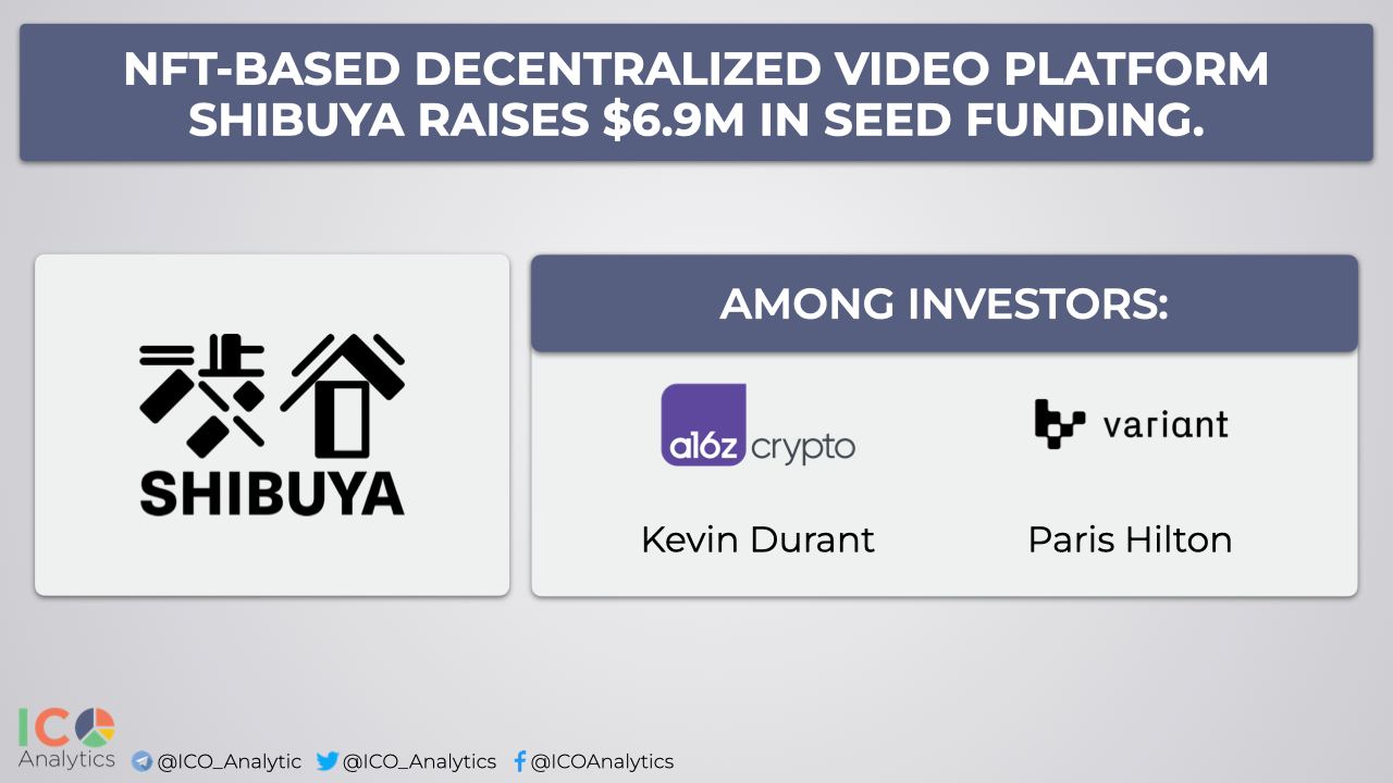 ββNFT-based decentralized video platform Shibuya raises $6.9M In seed funding. The round was led by a16z crypto and Variant with participation from notable angels Joe Tsai, GMJP, Kevin Durant, Paris Hilton, and others.