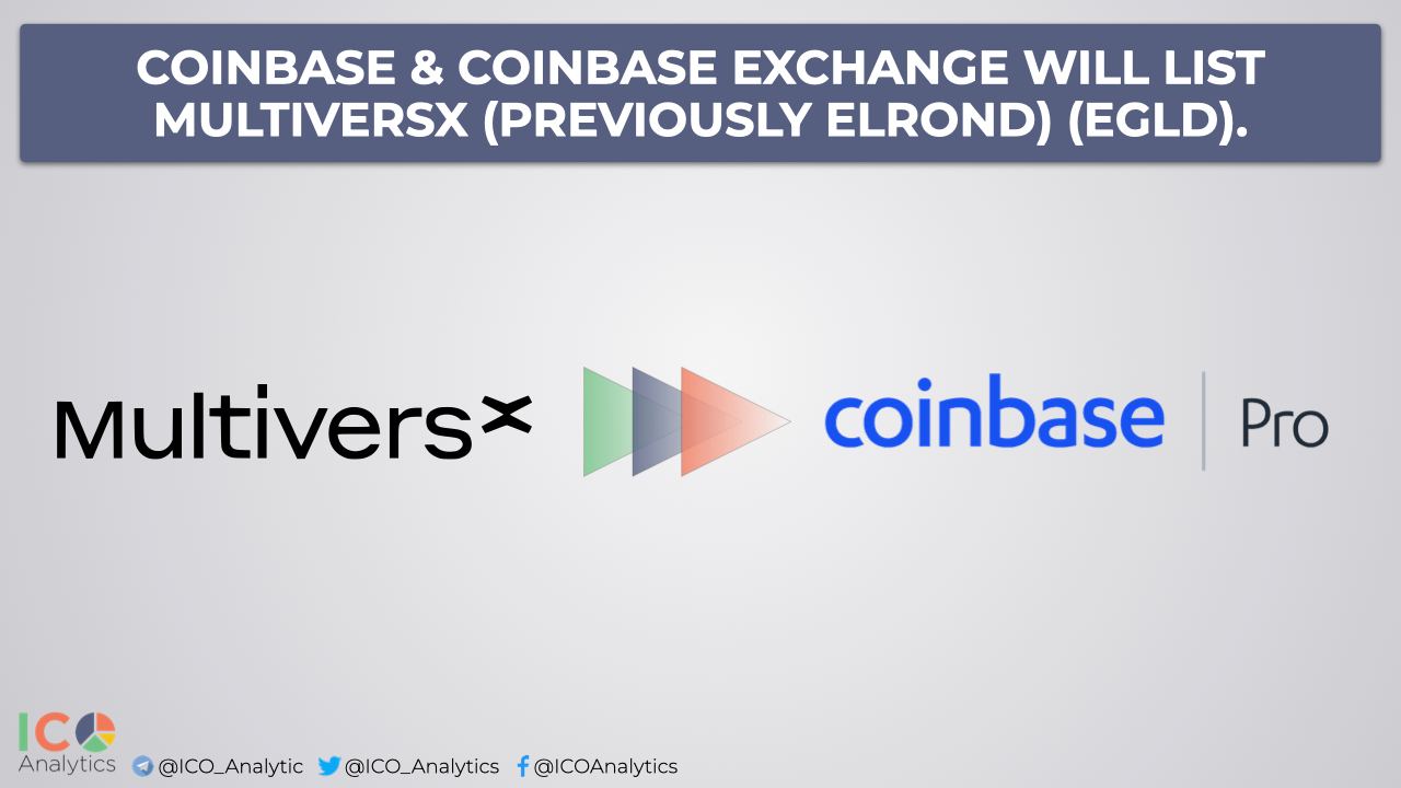 ββCoinbase & Coinbase Exchange will list MultiversX (Previously Elrond) (EGLD) on December 7. Trading will begin on or after 9AM PT on 7 December 2022, if liquidity conditions are met.