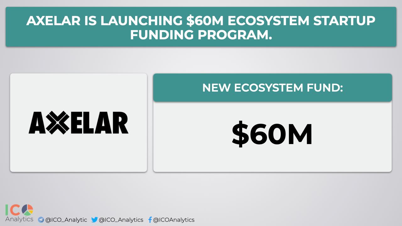 ββAxelar is launching $60M ecosystem startup funding program with the support from Blockchange, Chorus One, Collab+Currency, DCVC, Divergence Ventures, Dragonfly Capital, Lemniscap, Morningstar Ventures and others. The program is designed to nurture a pipeline of developers building Web3 products that rival anything on the centralized web.