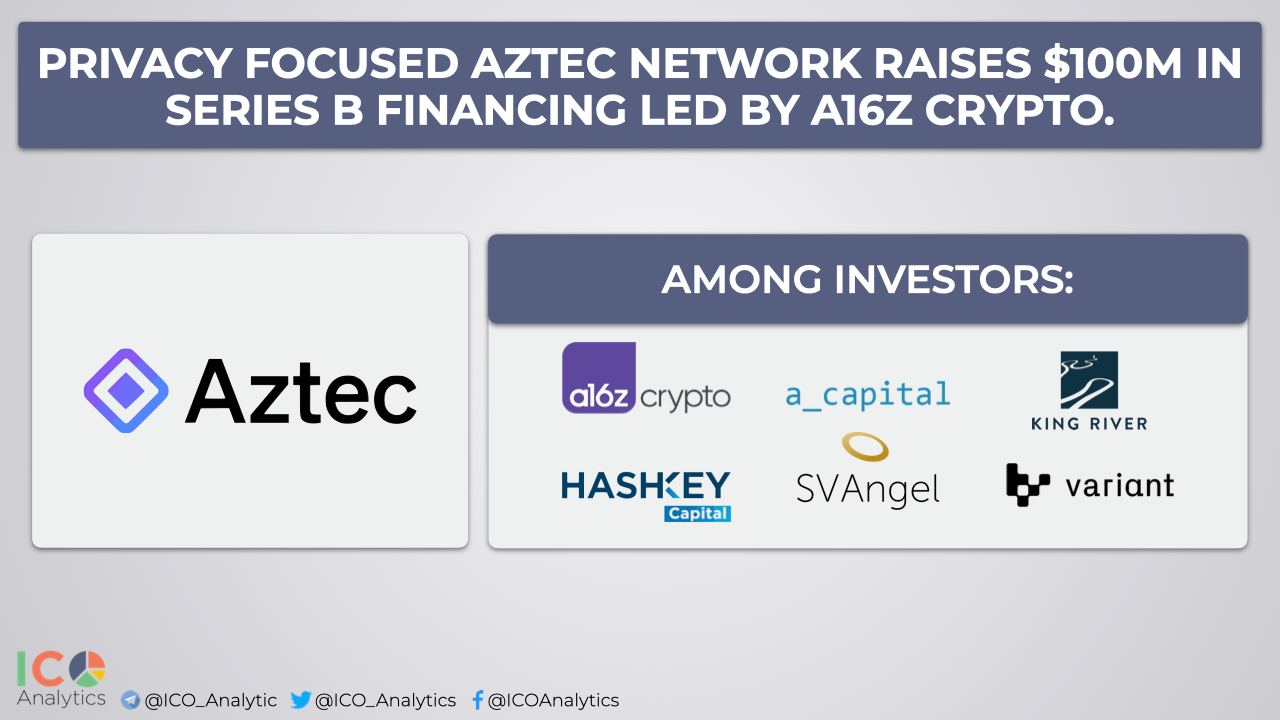 ββPrivacy focused Aztec Network raises $100M in Series B financing led by a16z crypto, with participation from A Capital, King River, Variant, SV Angel, Hash Key, Fenbushi, and AVG.