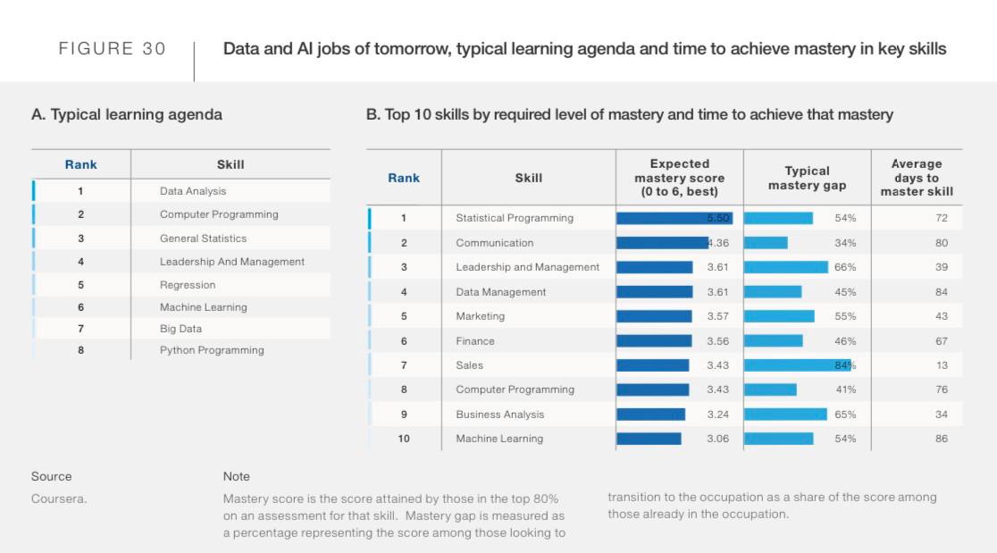 Интересная статистика о скиллах, которые будут востребованы к 2025 году. Что важно — с количеством времени, которое нужно затратить на их приобретение.