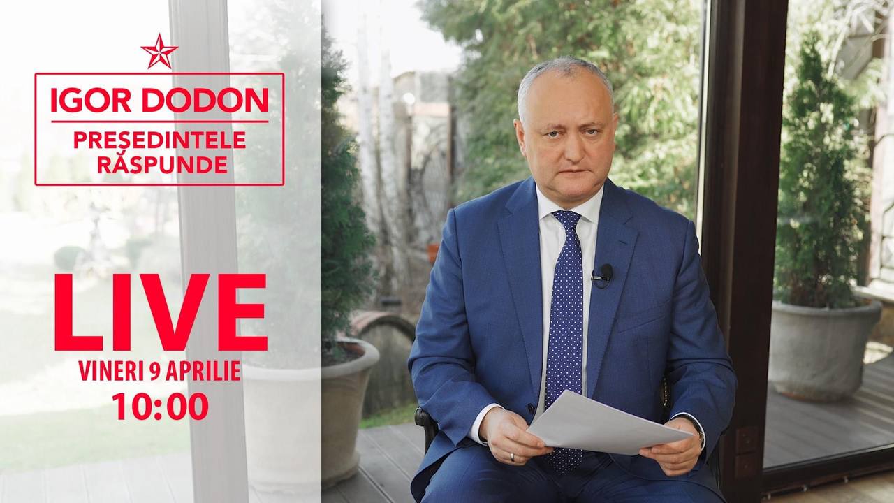 Oamenii așteaptă dialog, consens și soluții pentru a depăși criza în care se află Republica Moldova! Mâine, 9 aprilie, ora 10:00, în cadrul ”Președintele Igor Dodon răspunde” LIVE voi răspunde tuturor întrebărilor pe care le aveți și voi exprima poziția mea în legătură cu cele mai actuale subiecte și de interes major pentru cetățeni.