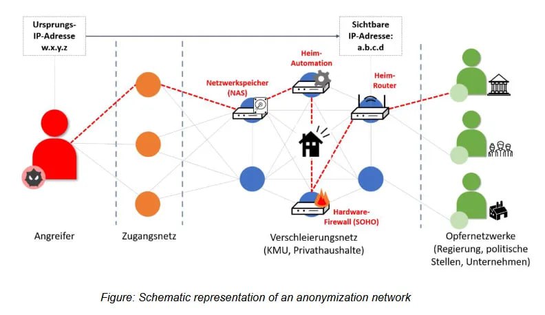 Другой способ противоправного использования зараженных устройств IoT получил наглядное подтверждение от немецкой спецслужбы BfV, которая на прошлой неделе рассказала о том, что китайские хакерские группы Vixen Panda и Zirconium в конце 2021 года успешно взломали немецкое Агентство картографии и геодезии. В процессе взлома китайские хакеры использовали заранее взломанные устройства IoT (маршрутизаторы, сетевые хранилища NAS и элементы умного дома ) для того, чтобы перенаправлять через них вредоносный трафик.